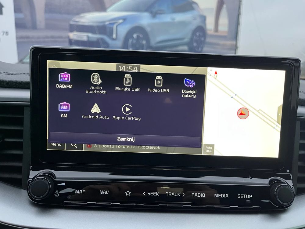 ✅️ System nawigacji satelitarnej z obsługą w języku polskim, 10.25” kolorowy ekran dotykowy LCD, 7-letni plan darmowej aktualizacji, tuner radia cyfrowego DAB, interfejs Apple CarPlay / Android Auto, zestaw usług cyfrowych Kia Connect