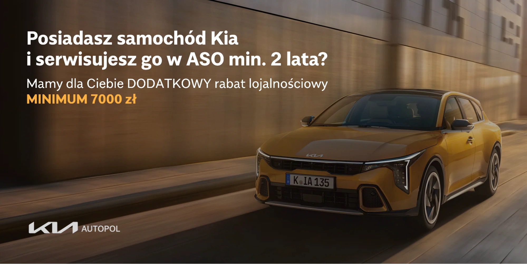 Jeśli posiadasz samochód marki Kia i serwisujesz go w ASO min. 2 lata, mamy dla Ciebie DODATKOWY rabat o wysokości min. 7000 zł!