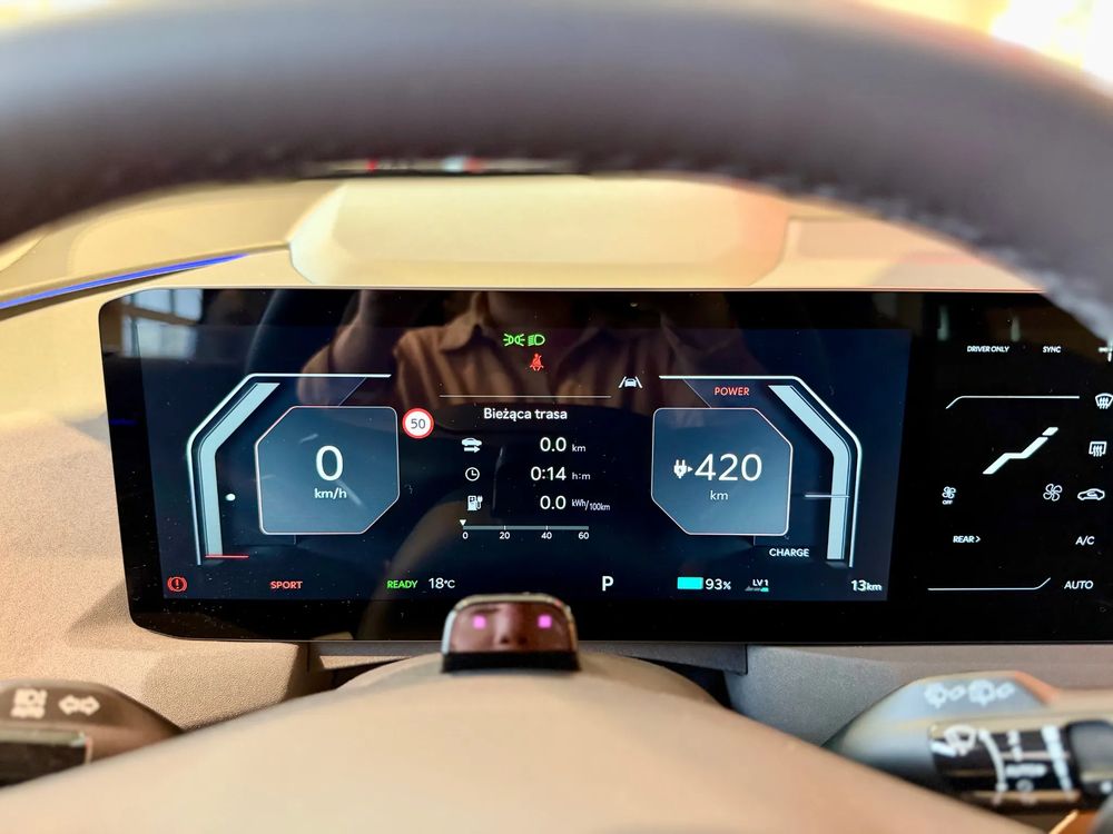 ✅ Panoramiczny potrójny wyświetlacz składający się z cyfrowego 12,3-calowego zestawu wskaźników kierowcy zintegrowanego z 12,3-calowym centralnym ekranem nawigacji oraz 5,3-calowym dotykowym ekranem do sterowania klimatyzacją